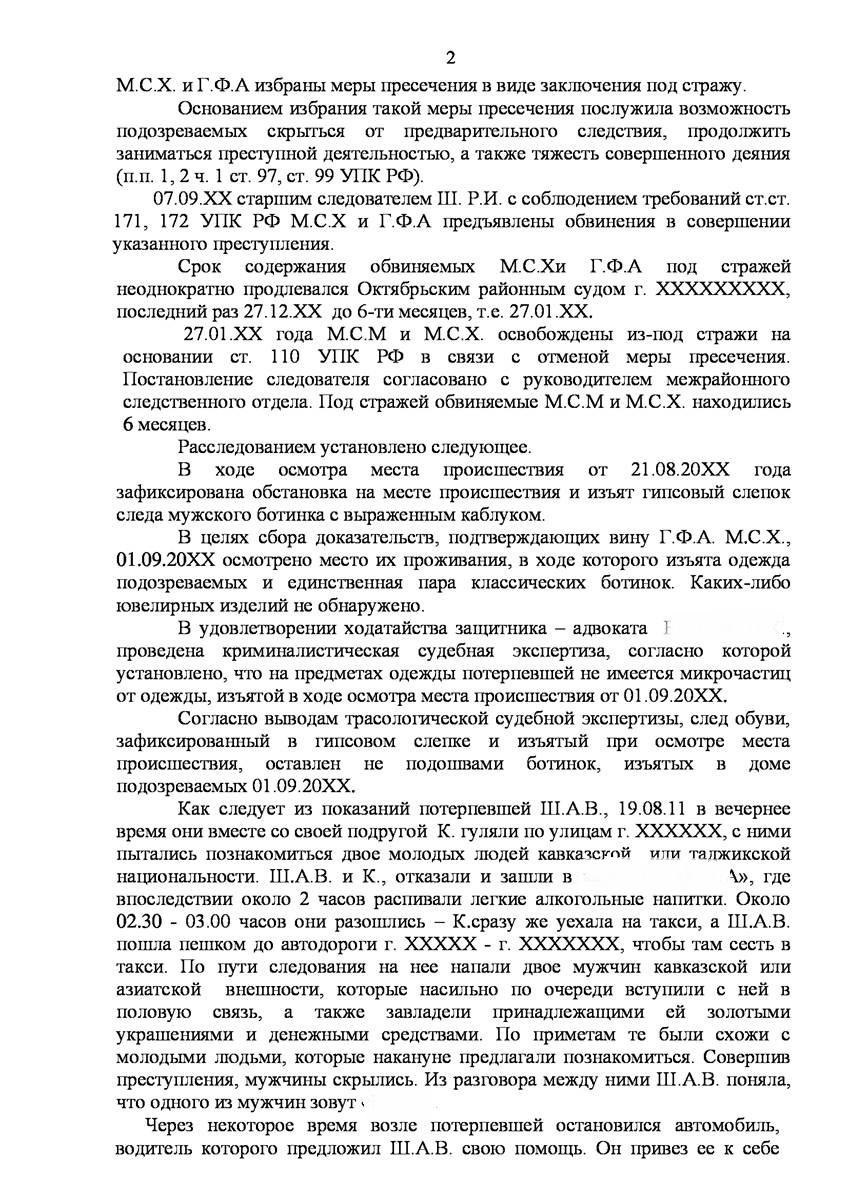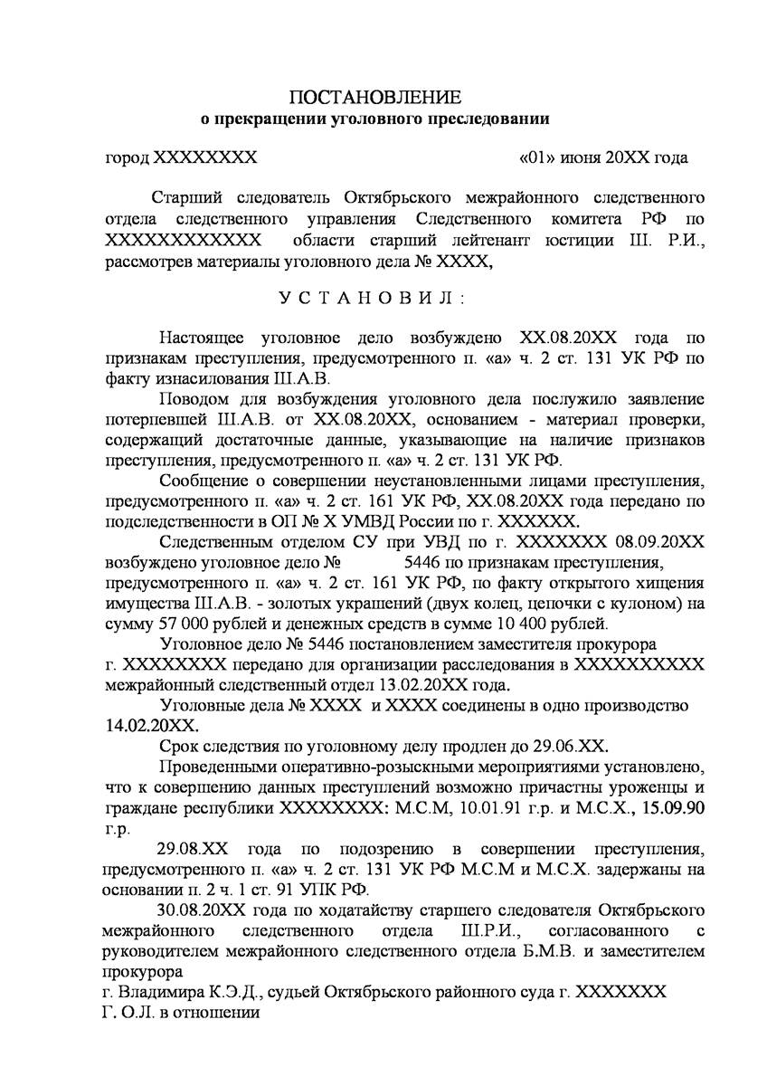 Адвокат в Климовске добился прекращения уголовного дела на стадии предварительного расследования по реабилитирующим основаниям в отношении двух граждан иностранного государства обвиняемых органами предварительно следствия в совершении преступления предусмотренного п. «а» ч.2 ст.131 УК РФ (изнасилование совершенное группой лиц) и п."а" , п."г" ч.2 ст.161 УК РФ (грабёж), наказание за которое предусматривает лишение свободы от восьми до пятнадцати лет, то есть преступление, которое в соответствии с ч.5 ст.15 Уголовного Кодекса Российской Федерации отнесено к категории особо тяжких преступлений.